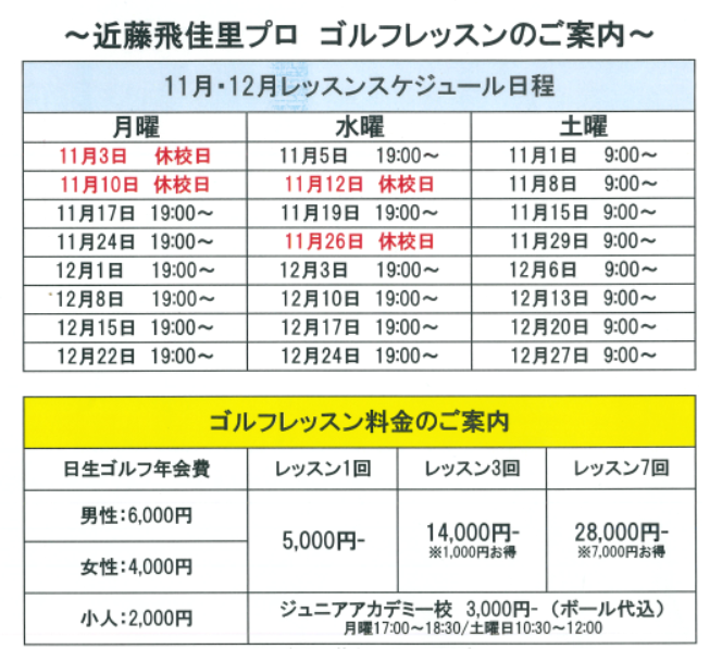 【近藤 飛佳里 プロ】ゴルフスクール