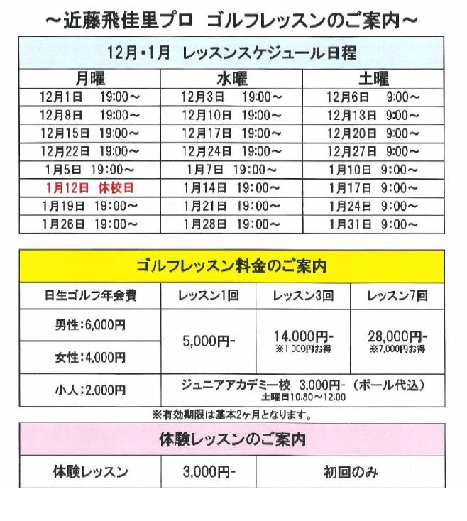 ※ボール代は別途です。106期は5回コース終了後1回1,500円になります